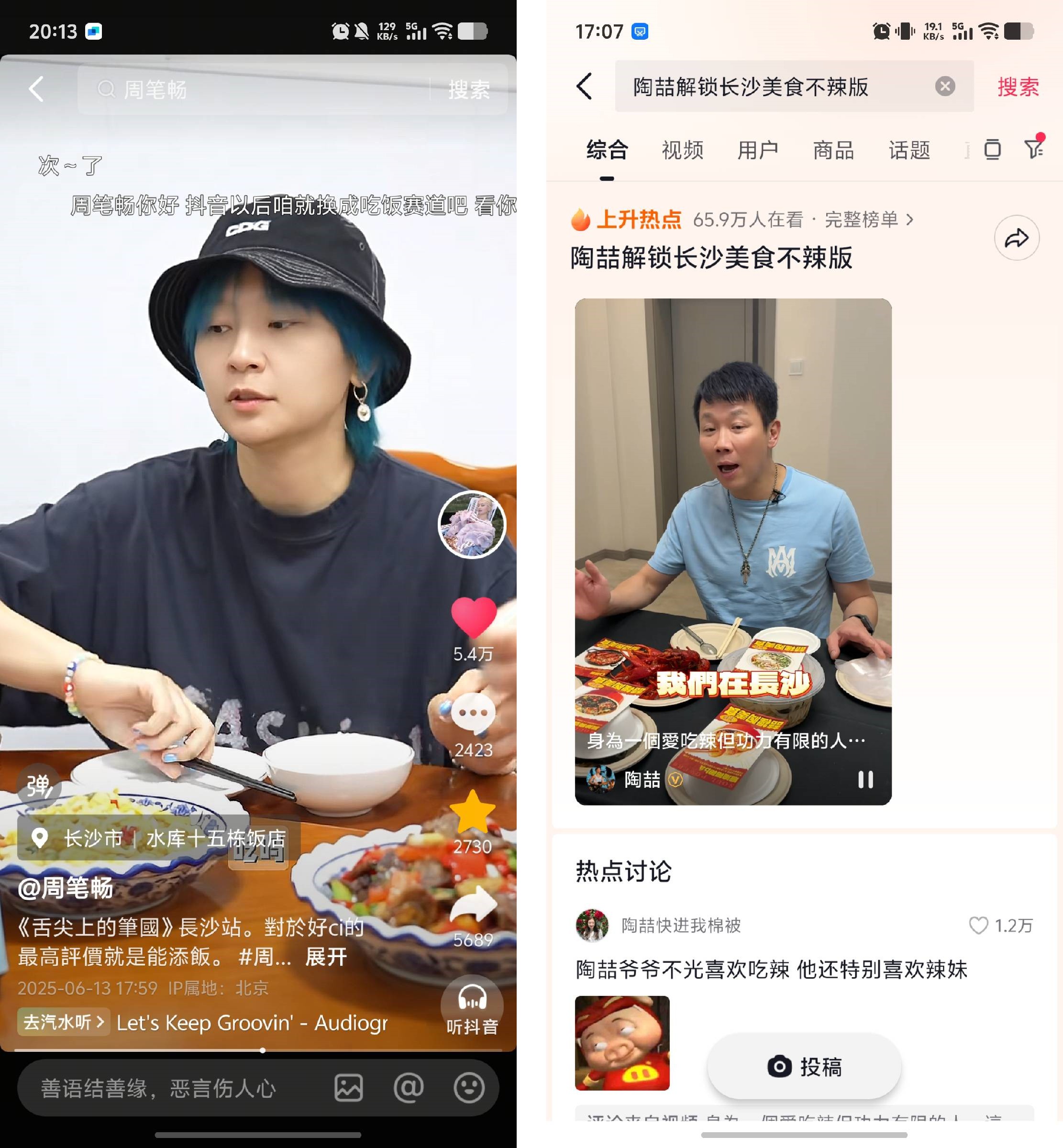 左:周筆暢x水庫十五棟  右:陶喆x長沙美食體驗