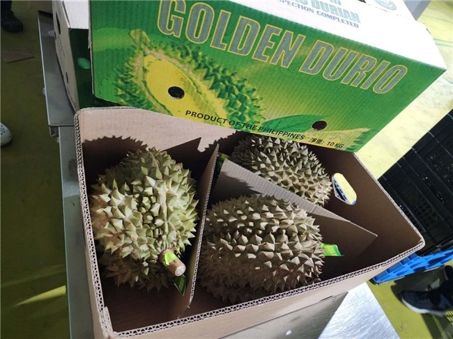 •       金榴蓮(新鮮榴蓮):以優(yōu)質(zhì)新鮮榴蓮聞名的 Golden Durio 品牌,在本次進(jìn)博會(huì)上占據(jù)中心舞臺(tái)。其獨(dú)特香氣和風(fēng)味是展會(huì)亮點(diǎn)之一,產(chǎn)品包裝明確標(biāo)注 “PRODUCT OF THE PHILIPPINES”(菲律賓原產(chǎn))及相關(guān)規(guī)格信息。