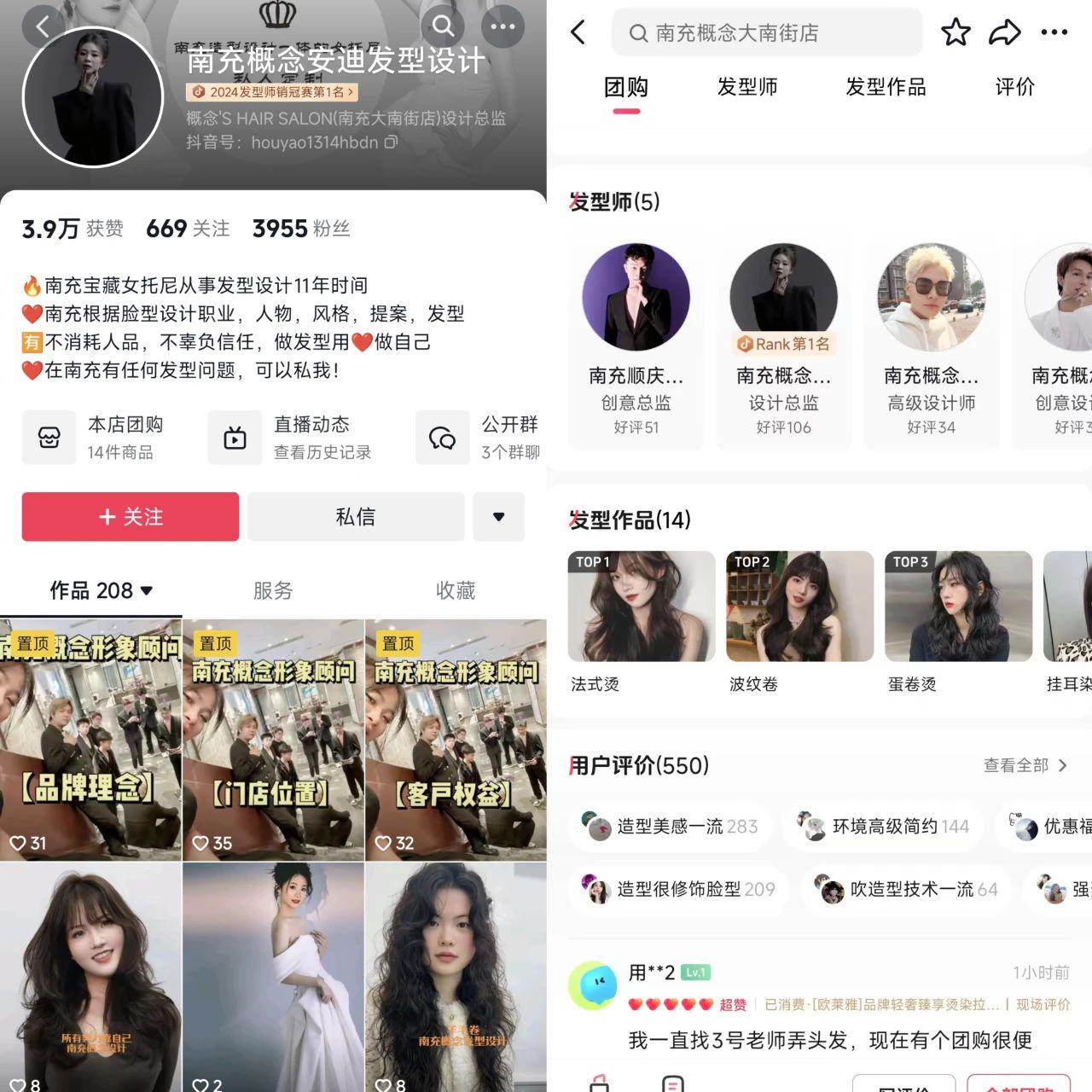 之所以能有如此成效,離不開直播、短視頻的實景展示,讓顧客在到店之前就能預見效果。這極大地提升了顧客的成單意愿和好感度。對于這一點,南充概念理發(fā)店的安迪也深有感觸。