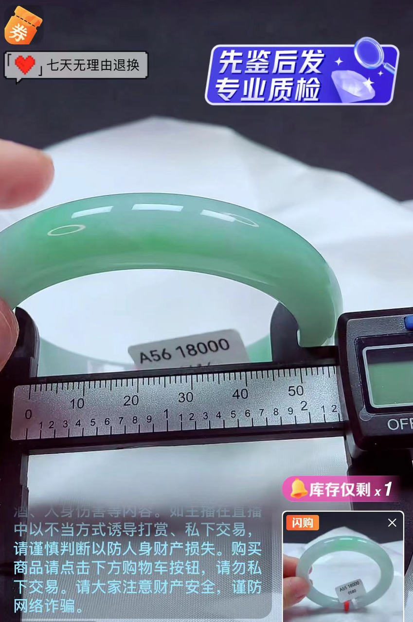 圖說:抖音電商的商家在用游標(biāo)卡尺測量翡翠直徑