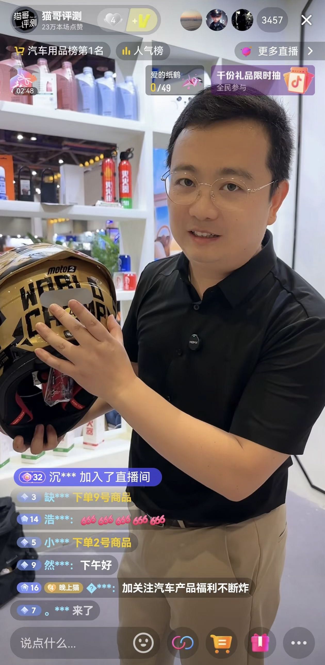 除了垂直領(lǐng)域的KOL外,來自其他領(lǐng)域的中小達人也積極參與到抖音商城中來。這些達人不斷嘗試新的內(nèi)容創(chuàng)作方向,并帶來了大量高質(zhì)量的內(nèi)容輸出,從而吸引更多元化的用戶群體關(guān)注。例如數(shù)碼類達人貓哥評測線下展會現(xiàn)場直播,首播便登上汽車用品榜第一名。