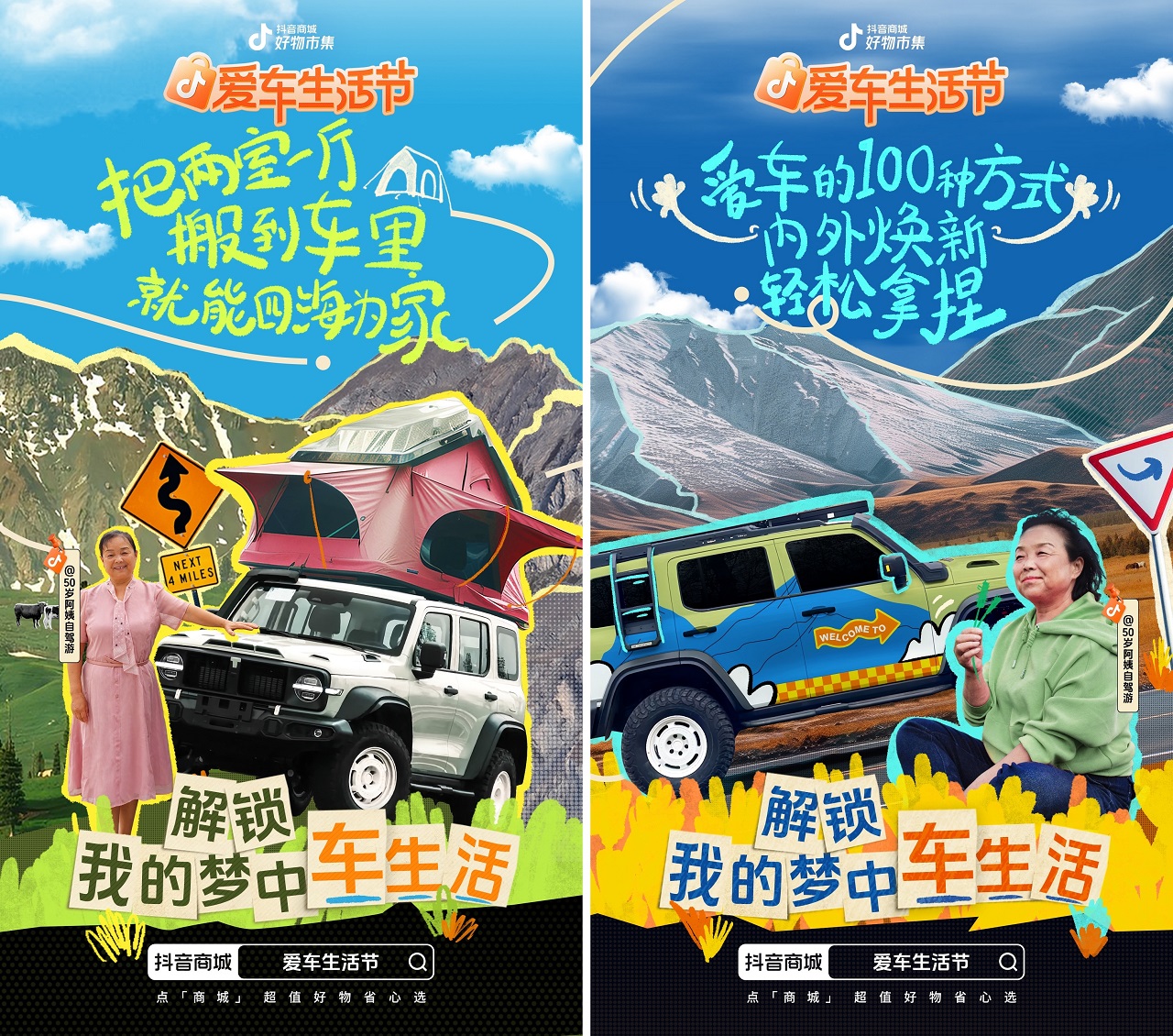 另一方面,抖音商城也邀請行業(yè)頭部達人深入真實生活場景內(nèi)容種草。比如@50歲阿姨自駕游是一位在抖音平臺上擁有眾多粉絲的生活方式博主,以其獨特的旅行經(jīng)歷和個人魅力吸引了大量關(guān)注。在此次活動中,她分享了自己駕車穿越祖國大好河山的故事,同時展示了如何通過精心挑選的汽車配件提升旅途中的舒適度與安全性。