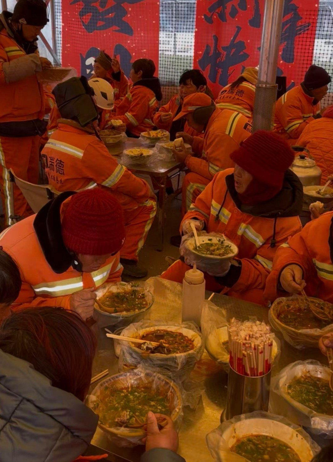 一位年輕些的環(huán)衛(wèi)工人則感嘆道:“說實(shí)話,我們這工作風(fēng)吹日曬,有時候確實(shí)覺得累。但今天這頓飯,讓我覺得自己的勞動被看見了,被尊重了。”