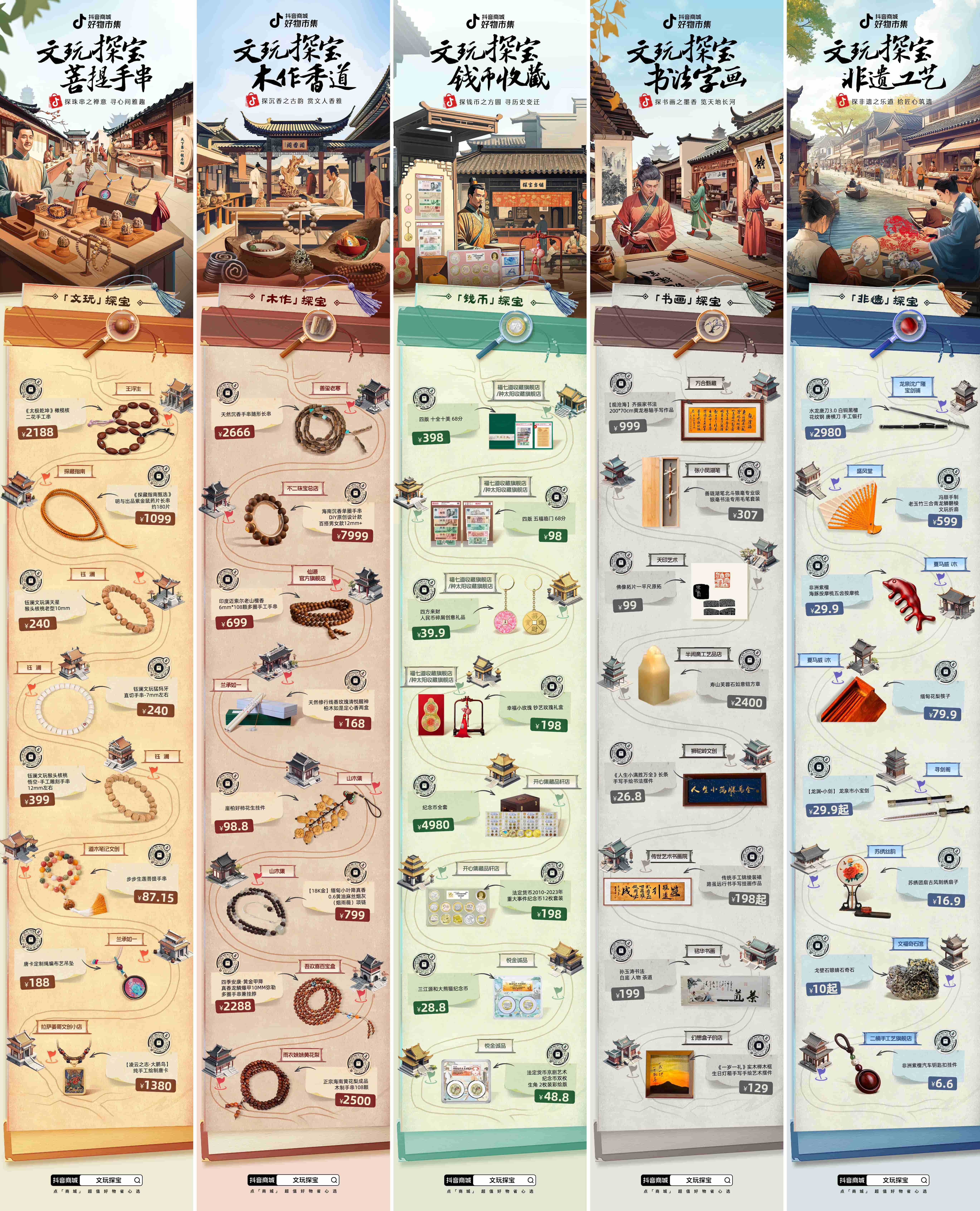 為了進(jìn)一步滿足年輕主力消費(fèi)群對(duì)文玩好物的需求,抖音商城好物市集IP特別推出「文玩探寶季」活動(dòng),以“趣”、“玩”為主線,攜手全國(guó)特色產(chǎn)業(yè)帶、特色店鋪等,共同打造文玩盛宴,并整合內(nèi)容熱點(diǎn)、達(dá)人種草和貨架場(chǎng)多方資源,引領(lǐng)文玩風(fēng)潮,幫助商家把握9月文玩銷售旺季機(jī)遇,迎來(lái)生意破峰增長(zhǎng)。
