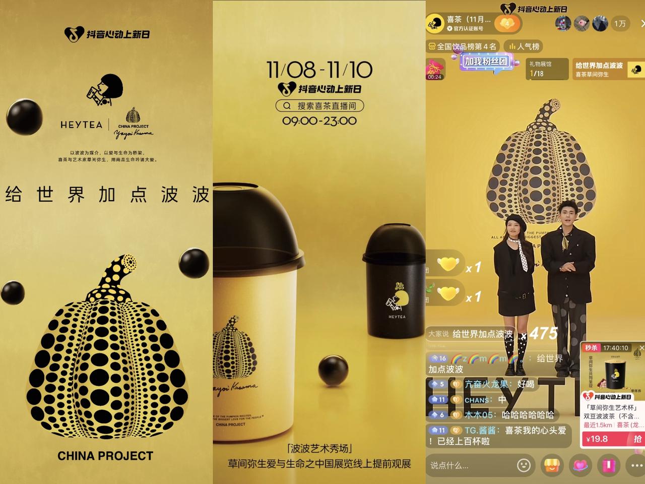 喜茶跨界聯(lián)動(dòng)草間彌生,在抖音藝術(shù)化呈現(xiàn)“波波”系列飲品