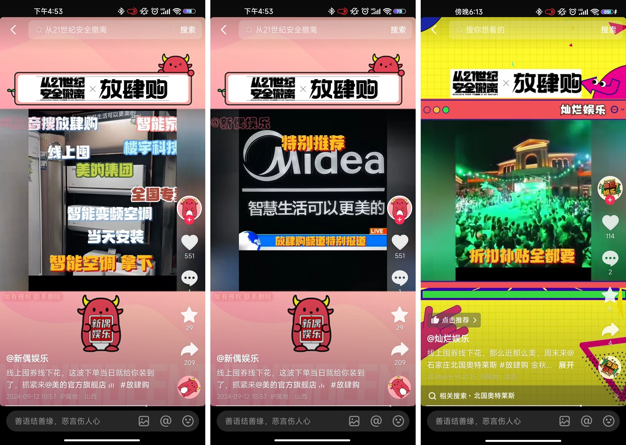 不僅如此,為了真實展現(xiàn)聯(lián)合商家的實際到店體驗,放肆購邀請眾多時尚探店達人擔任萬人買手團體驗官,體驗官們以好物分享、沉浸體驗、劇情演繹、趣味對話等形式給出自己的專屬探店心得,為已經(jīng)被勾起線下花欲望的小伙伴們提供建議與參考,做你身邊最貼心的放肆購搭子。
