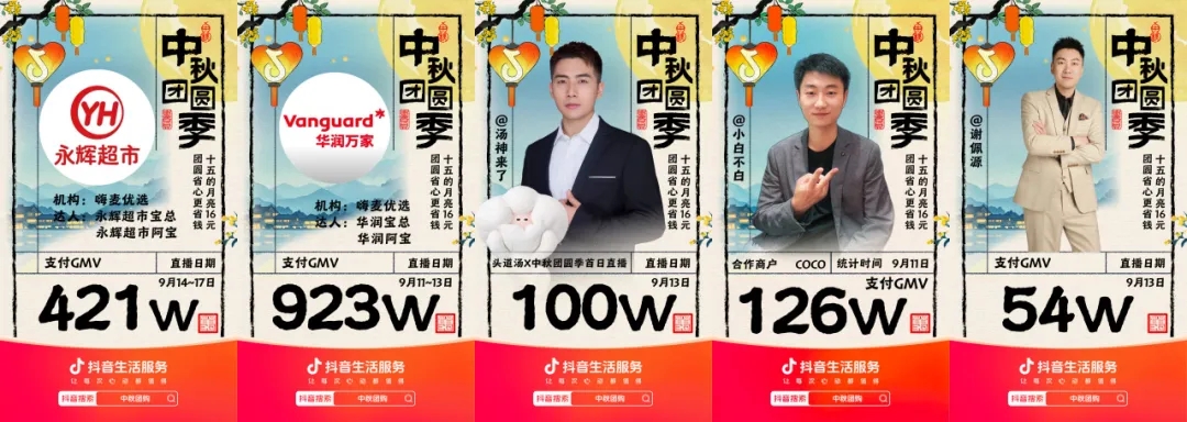 此外,活動(dòng)充分調(diào)動(dòng)優(yōu)勢(shì)資源,通過(guò)明星達(dá)人直播的排兵布陣,加速消費(fèi)者購(gòu)買決策鏈路。抖音生活服務(wù)邀請(qǐng)到辰亦儒、許君聰?shù)让餍腔韴F(tuán)圓星推官,在中秋直播中帶領(lǐng)廣大用戶開啟中秋吃喝玩樂(lè)之旅。辰亦儒直播首日告捷,實(shí)現(xiàn)全國(guó)西餐第一、北京團(tuán)購(gòu)第一。許君聰全國(guó)團(tuán)購(gòu)榜第一,更有@華潤(rùn)寶總 @華潤(rùn)阿寶、@小白不白、@湯神來(lái)了、@謝佩源等達(dá)人推薦中秋好品,以優(yōu)質(zhì)內(nèi)容種草拉升品牌交易增長(zhǎng)。