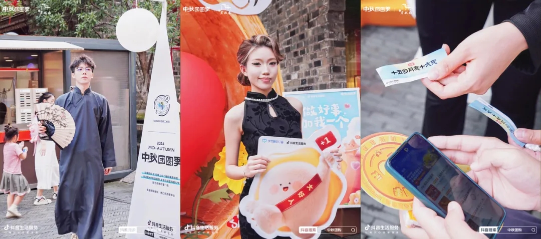 線上線下聯(lián)動(dòng)之外,抖音生活服務(wù)在節(jié)日來(lái)臨前,就率先通過(guò)社區(qū)、商場(chǎng)、景區(qū)等渠道擴(kuò)散活動(dòng)玩法,讓中秋溫馨氛圍觸手可及,吸引人們紛紛加入「中秋團(tuán)圓季」,找到中秋佳節(jié)的最新打開方式,沉淀了“過(guò)中秋、上抖音”的用戶心智。