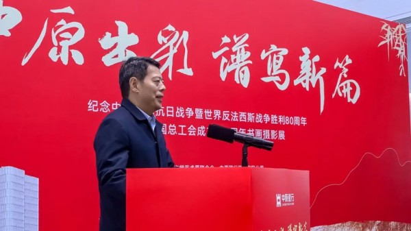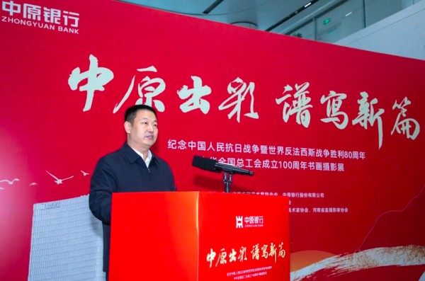 金秋十月,碩果累累。經(jīng)過數(shù)月的精心籌備,在熱烈、歡快、喜慶的氣氛中,由河南省直文聯(lián)、中原銀行聯(lián)合舉辦的“中原出彩 譜寫新篇——紀念中國人民抗日戰(zhàn)爭暨世界反法西斯戰(zhàn)爭勝利80周年、慶祝中華人民共和國成立76周年、中華全國總工會成立100周年書畫攝影展”。于10月28日(星期二)上午10點,在鄭州市鄭東新區(qū)金融島中原銀行總部大廈一樓大廳隆重開幕。