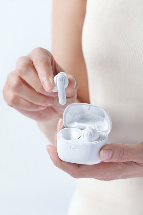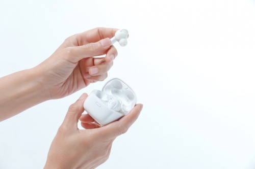 數(shù)字助聽器的音質(zhì)通常會因為信號處理延遲導(dǎo)致實際音質(zhì)受損,為針對性解決這一問題,科大訊飛通過全新技術(shù)將智能助聽器的延遲縮短至6ms,遠低于FDA延遲標(biāo)準(zhǔn)(<15毫秒),以此消除由延遲帶來的音質(zhì)失真。 四、耳機設(shè)計抗菌材質(zhì):舒適助聽無負擔(dān),兼?zhèn)銽WS耳機功能 不同于傳統(tǒng)助聽器設(shè)備,訊飛智能助聽器采用時下流行的TWS耳機造型,配合耳道貼合防掉設(shè)計,為聽損用戶帶來更加時尚和舒適的佩戴體驗,且兼?zhèn)銽WS藍牙耳機的各類功能。材質(zhì)上,訊飛智能助聽器的耳塞中添加銀離子抗菌劑,通過了廣東省微生物分析檢測中心安全性認證,抗菌率高達99.9%。 為保證音質(zhì),訊飛智能助聽器內(nèi)置專業(yè)動鐵單元,擁有超過10000Hz的高頻解析力,聽感層次更分明,人聲更穩(wěn)更真實。訊飛智能助聽器配備充電收納倉,單次充電支持連續(xù)使用14小時,配合充電倉則能夠使用64小時,輕松應(yīng)對一周的續(xù)航需求。