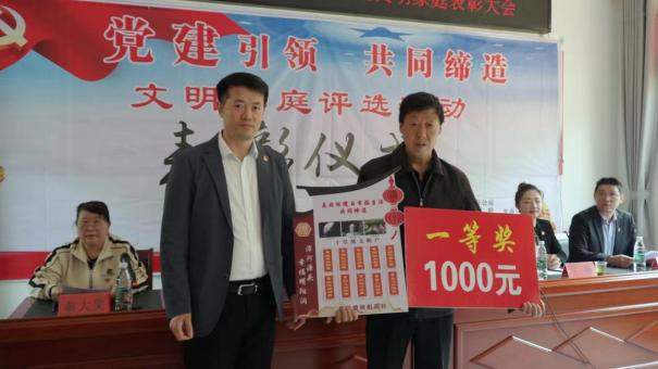 (圖注:陽光財險在薛坪鎮(zhèn)陽明洞村開展的“文明家庭評選活動”表彰儀式現(xiàn)場)