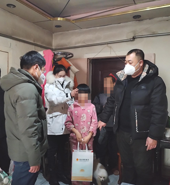 陽光財險伊春中支先后采購藥箱、口罩、糕點、水果、午餐肉及水果罐頭等春節(jié)禮品,與伊春市伊美區(qū)婦聯(lián)主席共同看望中支定向幫扶的兒童,向她送去節(jié)日的祝福和對困難家庭的深切關(guān)心。2022年6月,伊春中支通過伊美區(qū)婦聯(lián)了解到劉某某自幼父母離異,與患有腦梗的爺爺相依為命,爺孫兩人依靠低保維持生活,日常生活極為困難。伊春中支主動提出劃撥專項費用,為劉某某無償提供午餐及托管費用支持,使她感受到陽光大家庭的溫暖。