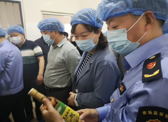 執(zhí)法人員現(xiàn)場檢查。薛慶元攝 活動現(xiàn)場,家長代表抽簽決定了本次活動體驗的學(xué)校食堂——淮安市東城開明中學(xué)。9點30分左右,參與此次消費體驗活動的人員已穿過一排排的教學(xué)樓,來到了啟禮樓,學(xué)校食堂就在一樓。當消費體驗人員進入學(xué)校食堂后廚的操作區(qū)域,映入眼前的便是洗消區(qū)域,干凈整潔的地面墻面,給大家留下了深刻印象?!斑€不錯,比我想象得好多了?!钡谝淮螀⒂^學(xué)校食堂的學(xué)生家長郭先生說到。緊接著,食堂工作人員向大家介紹了食堂采購、保管、清洗、加工、消毒、就餐、留樣及食物中毒應(yīng)急預(yù)案等方面的具體做法,得到了家長們的肯定。