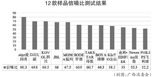 信噪比作為音質(zhì)純凈度的關(guān)鍵指標(biāo),aigo愛國者以80.3dB(分貝)的成績表現(xiàn)優(yōu)秀,噪點(diǎn)和失真少;DJI大疆、RODE羅德等7款樣品信噪比≥60dB,音質(zhì)表現(xiàn)穩(wěn)定;KInYO金運(yùn)、花再·EDIFIER等4款樣品信噪比低于60dB,音質(zhì)純凈度有待提升。