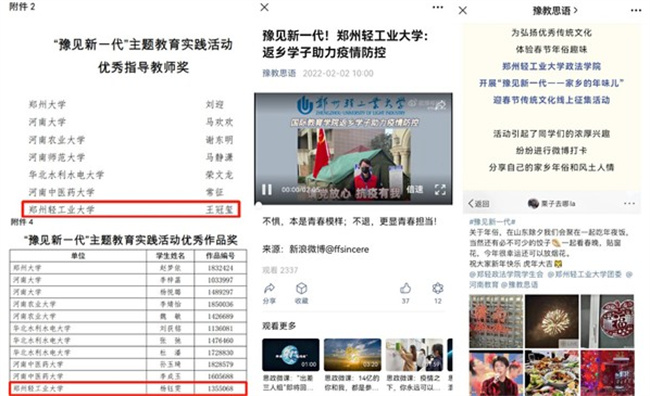 自活動(dòng)開展以來(lái),學(xué)校積極響應(yīng)落實(shí)上級(jí)工作部署,全校各級(jí)團(tuán)組織全面動(dòng)員、積極配合,主動(dòng)利用微信公眾號(hào)、微博等新媒體矩陣進(jìn)行廣泛宣傳,進(jìn)一步深化育人與實(shí)踐融合、線上與線下呼應(yīng)的網(wǎng)絡(luò)思政工作機(jī)制。本次活動(dòng)以紅色文化育人、社會(huì)實(shí)踐育人等方式,通過騰訊微博積極參與#豫見新一代#話題討論,引導(dǎo)青年學(xué)生緊緊圍繞時(shí)代發(fā)展,進(jìn)一步學(xué)習(xí)黨的故事、革命的故事、英雄的故事,感受黨的百年奮斗初心使命和人民群眾幸福生活?;顒?dòng)開展期間,近萬(wàn)名輕工大青年學(xué)子在做好自身防護(hù)的同時(shí),圍繞“關(guān)愛老年人”“關(guān)愛青少年”“疫情防控”“迎春節(jié)·弘揚(yáng)傳統(tǒng)文化”“運(yùn)動(dòng)技能打卡”“四史學(xué)習(xí)”等主題教育實(shí)踐活動(dòng),以“記錄分享身邊人身邊事”的形式,正確認(rèn)識(shí)、主動(dòng)宣傳、嚴(yán)格服從和積極服務(wù)于防疫抗疫大局,傳承革命精神、孝老敬親扶幼、弘揚(yáng)傳統(tǒng)文化、涵養(yǎng)家國(guó)情懷,共發(fā)表微博1萬(wàn)余篇,累計(jì)閱讀量達(dá)到20萬(wàn)余次。其中,國(guó)際教育學(xué)院學(xué)生鄭鵬飛的疫情防控先進(jìn)事跡和政法學(xué)院學(xué)生孫業(yè)凈、曹昕欣、馬景娜的春節(jié)年俗趣味故事被河南省教育廳微信公眾號(hào)“豫教思語(yǔ)”轉(zhuǎn)載報(bào)道。 百年風(fēng)華正青春,踔厲奮發(fā)向未來(lái)。此次“豫見新一代”主題教育實(shí)踐活動(dòng)是獻(xiàn)禮“黨的二十大”系列活動(dòng)之一,也是做好該校青年思想政治教育、加強(qiáng)黨的最新理論知識(shí)學(xué)習(xí)的又一舉措,活動(dòng)堅(jiān)持線上線下結(jié)合,創(chuàng)新方式方法載體,深度融入社會(huì)熱點(diǎn),豐富了青年學(xué)生理想信念教育方式,砥礪并凝聚廣大青年學(xué)生為國(guó)擔(dān)當(dāng)?shù)闹練?、骨氣和底?動(dòng)員并引領(lǐng)廣大青年學(xué)生把青春奮斗融入黨和人民事業(yè),以實(shí)際行動(dòng)迎接黨的二十大勝利召開。(范丹瑩)