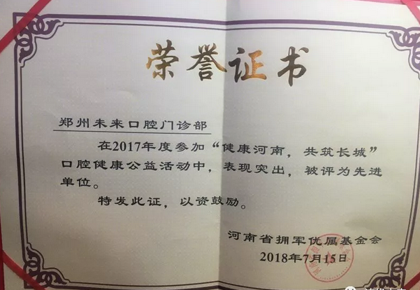 2017年,未來(lái)口腔共為近百位符合條件的現(xiàn)役軍人、復(fù)退軍人及家屬提供了近20萬(wàn)元的免費(fèi)診療服務(wù),贏得了參與擁軍活動(dòng)軍、屬的一致好評(píng)。