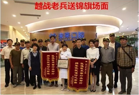 圖為抗戰(zhàn)老兵為未來(lái)口腔贈(zèng)送錦旗