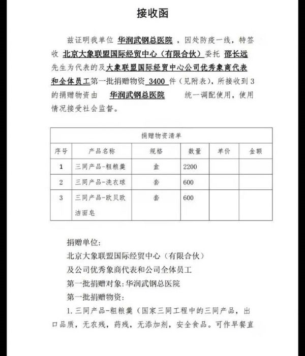 生命重于泰山,災情就是命令,防控就是責任。 2月2日早上,大象聯(lián)盟攜全體員工及優(yōu)秀象商捐贈的首批物資已經(jīng)從鄭州航空港經(jīng)濟綜合實驗區(qū)的大象聯(lián)盟“中國三同產(chǎn)品(鄭州)集配中心”裝貨發(fā)往武漢疫區(qū)兩家醫(yī)院(武漢第一人民醫(yī)院和武漢華潤武鋼總醫(yī)院),以支援新型冠狀病毒感染的肺炎防治工作。