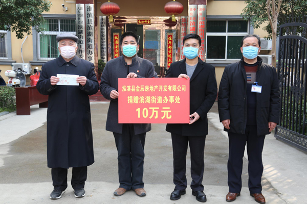 河南淮濱金辰房地產向濱湖街道捐贈防疫款10萬元