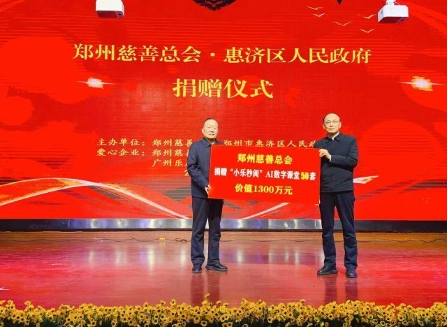 廣州樂庚信息科技有限公司向鄭州慈善總會捐贈“小樂秒閱”無感知AI數(shù)字課堂設(shè)備。