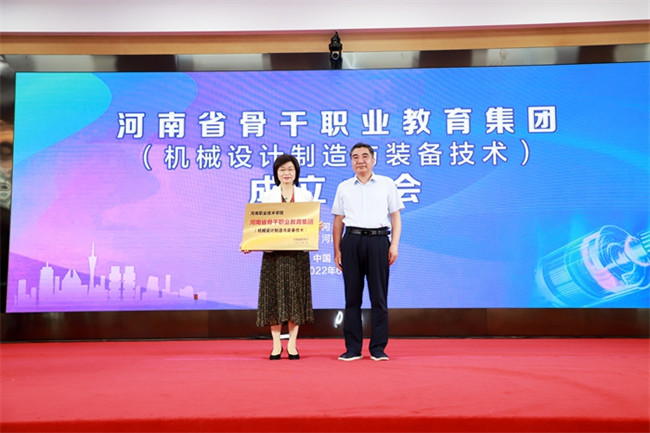 河南省教育廳副廳長陳垠亭為河南機(jī)械設(shè)計(jì)制造與裝備技術(shù)職業(yè)教育集團(tuán)授牌