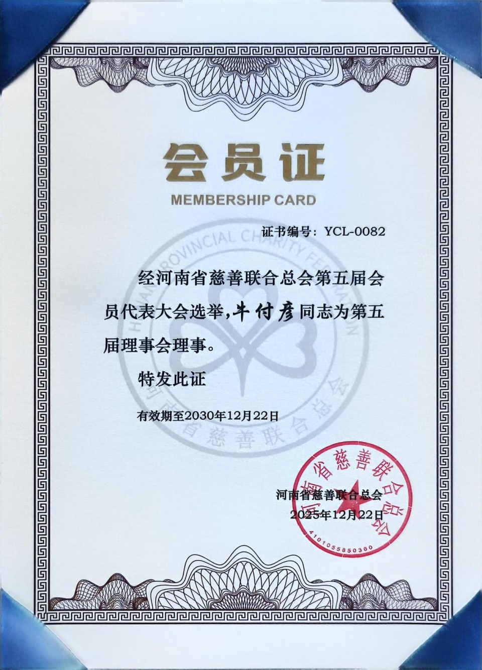 12月23日,河南省慈善聯(lián)合總會(huì)第五屆會(huì)員代表大會(huì)在鄭州黃河迎賓館隆重召開,大會(huì)zhu要議程是進(jìn)行換屆選舉,選出第五屆會(huì)長、副會(huì)長、秘書長和新一屆理事單位和理事,資深媒體人牛付彥當(dāng)選為第五屆理事。