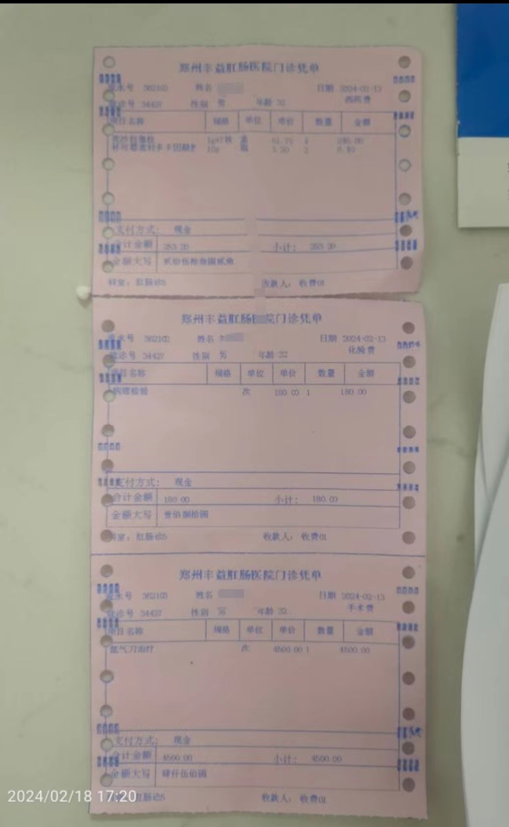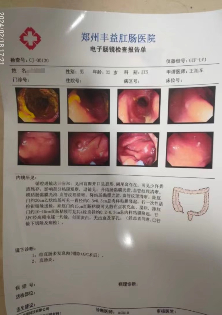 2024年2月13日,我到鄭州豐益肛腸醫(yī)院,上來(lái)就讓做腸鏡,說(shuō)你這毛病只能手術(shù)切除4500。4個(gè)0.3mm以內(nèi)的直腸炎癥息肉不需要手術(shù),炎癥好了也可以自愈,結(jié)果一共花了6200元,典型的過(guò)度醫(yī)療。