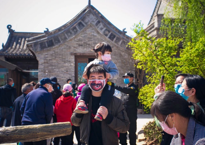 記者在電影小鎮(zhèn)看到,廣大游客佩戴口罩,自覺掃碼后入園,遇到個別忘記佩戴口罩的游客,電影小鎮(zhèn)也主動為游客提供一次性醫(yī)用口罩。同時(shí),電影小鎮(zhèn)為游客準(zhǔn)備的定制搞怪口罩,廣受游客喜愛。游客自帶的各式各樣的花式防護(hù),也令人眼花繚亂。不少喜歡體驗(yàn)歷史穿越感覺的游客換上古裝,戴上頭飾,漫步在電影大道及太極湖邊,或觀看精彩的演出節(jié)目,或在古香古色的建筑前合影留念,或帶著老人、孩子坐上黃包車周游小鎮(zhèn)。