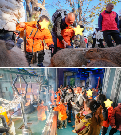 在特別設(shè)置的萌寵體驗(yàn)區(qū),孩子們參觀了“猴子猩球”,了解松鼠猴、獼猴等靈長(zhǎng)類(lèi)動(dòng)物的習(xí)性,還親手投喂了溫順的水豚家族,小水豚呆萌的模樣,讓孩子們興奮地合影留念。專(zhuān)業(yè)講解員用生動(dòng)易懂的語(yǔ)言進(jìn)行科普,讓這次互動(dòng)不僅充滿樂(lè)趣,更成為一次溫暖的生命教育。活動(dòng)期間,園區(qū)還為孩子們準(zhǔn)備了精美的動(dòng)物主題文創(chuàng)禮物,這份意外的驚喜讓他們愛(ài)不釋手,也為這場(chǎng)探索之旅增添了一份溫暖的紀(jì)念。
