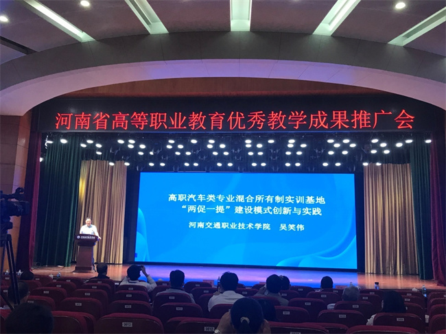 此次推廣會(huì)經(jīng)河南省教育廳批準(zhǔn),由河南省高等職業(yè)教育研究會(huì)、河南省中原職業(yè)教育研究院聯(lián)合主辦,是我省高等職業(yè)教育優(yōu)秀教學(xué)成果在全省推廣和分享的盛會(huì)。推廣成果以往屆國家級(jí)教學(xué)成果和我省高等職業(yè)教育教學(xué)成果特等獎(jiǎng)為主,代表著我省高等職業(yè)教育教學(xué)成果的高水平。 據(jù)悉,全省僅有16所高職院校的21項(xiàng)優(yōu)秀教學(xué)成果在大會(huì)上交流推廣。河南交通職業(yè)技術(shù)學(xué)院(簡(jiǎn)稱“河南交院”)作為受邀院校之一,參加推廣交流。會(huì)上,河南交院吳笑偉教授以《高職汽車類專業(yè)混合所有制實(shí)訓(xùn)基地“兩促一提”建設(shè)模式創(chuàng)新與實(shí)踐》為題,從成果的起源、背景、解決的主要問題和解決方案、創(chuàng)新點(diǎn)和應(yīng)用推廣效果5個(gè)方面,對(duì)河南交院混合所有制實(shí)訓(xùn)基地建設(shè)成果進(jìn)行分享交流。教學(xué)成果理念領(lǐng)先、應(yīng)用效果好,為全省混合所有制實(shí)訓(xùn)基地建設(shè)提供了“河交”方案,得到大會(huì)同仁的一致肯定和廣泛好評(píng)。 此次大會(huì)作為河南高等職業(yè)教育優(yōu)秀教學(xué)成果在全省推廣的盛會(huì),對(duì)于促進(jìn)河南交院混合所有制教學(xué)成果在全省推廣應(yīng)用,提升河南交院在河南高校中的知名度和影響力具有重要意義。(張曉玉)