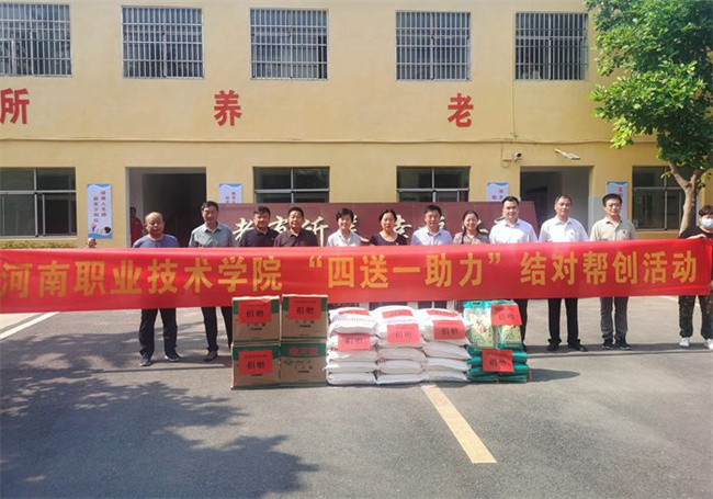 為發(fā)揮文明單位示范引領作用,促進城鄉(xiāng)精神文明融合發(fā)展,助力全面推進鄉(xiāng)村振興,以實際行動迎接黨的二十大勝利召開,6月30日,河南職業(yè)技術學院黨委副書記、紀委書記田華、副校長李玉峰帶領宣傳部、科技開發(fā)處、繼續(xù)教育與培訓中心等部門同志赴舞陽縣辛安鎮(zhèn),與舞陽縣辛安鎮(zhèn)政府簽署“四送一助力”結(jié)對幫創(chuàng)合作協(xié)議,開展物資捐贈,支部共建、慰問敬老院和送文化、科技等結(jié)對幫創(chuàng)活動。舞陽縣縣委常委、宣傳部長、副縣長王仕梁及有關部門和鄉(xiāng)鎮(zhèn)領導陪同參加。